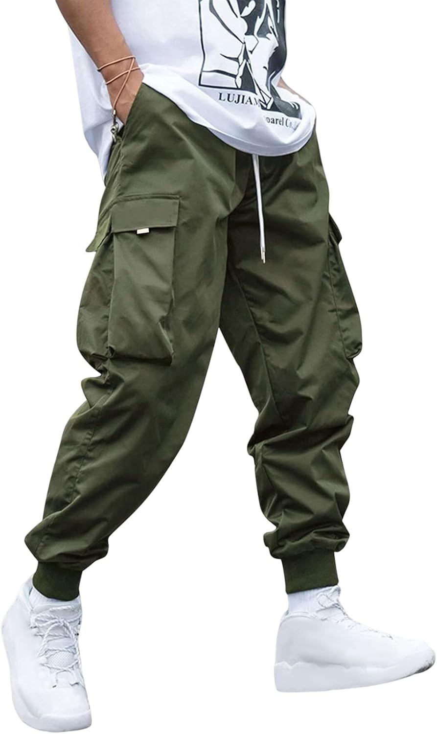 men Streetwear Cargo Pants with Flap Pockets & Drawstring Elastic Waist – Casual & Techwear Joggers